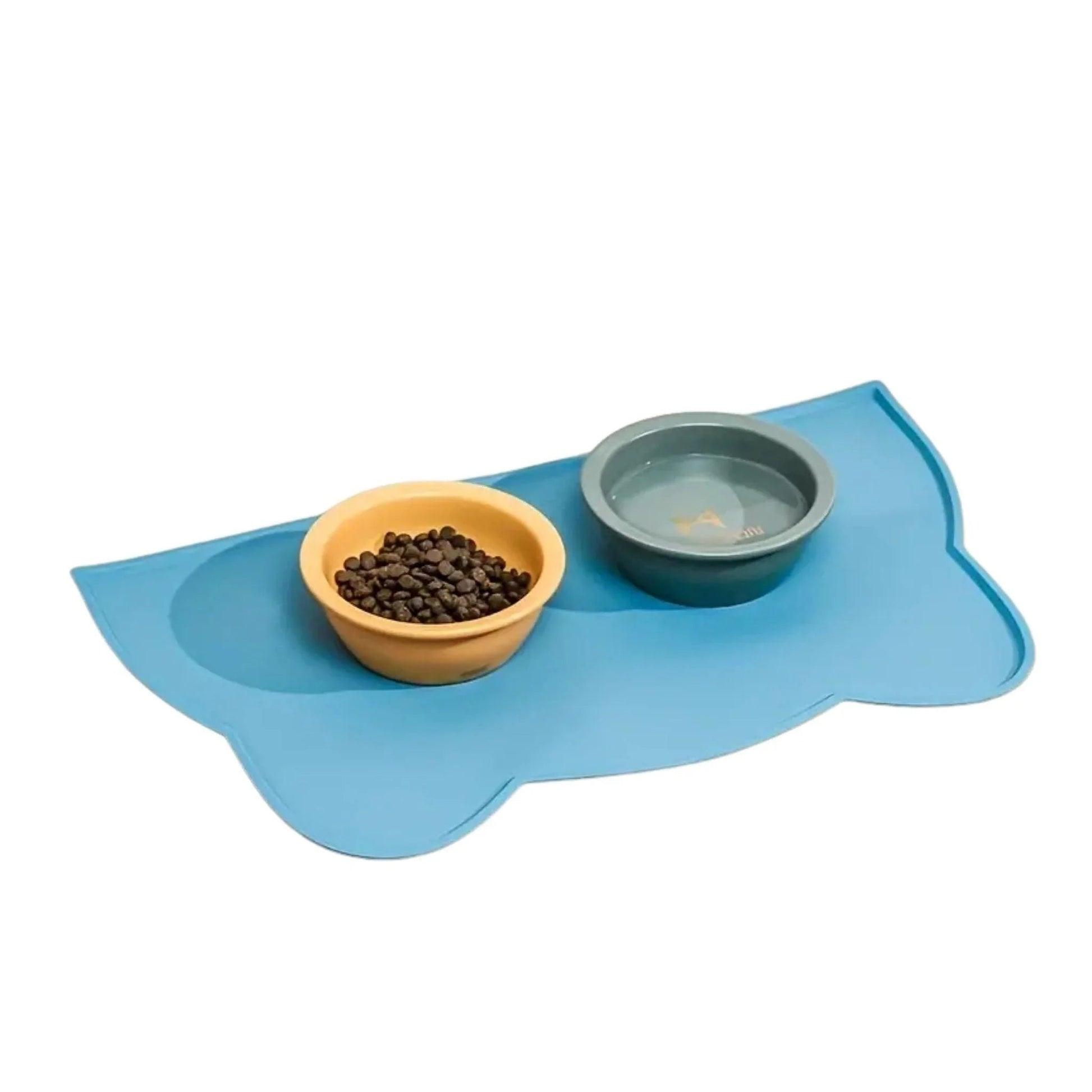 משטח סיליקון לאוכל ומים לחתולים וכלבים צבע כחול בעיצוב אוזניים