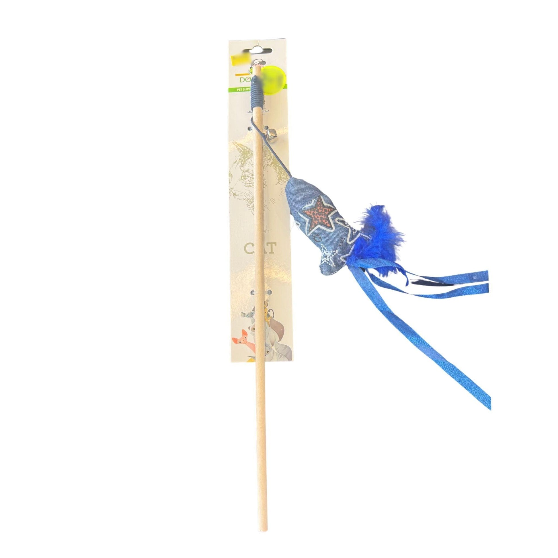 צעצוע חכה לחתול עם דג בד וכוכבים ונוצה