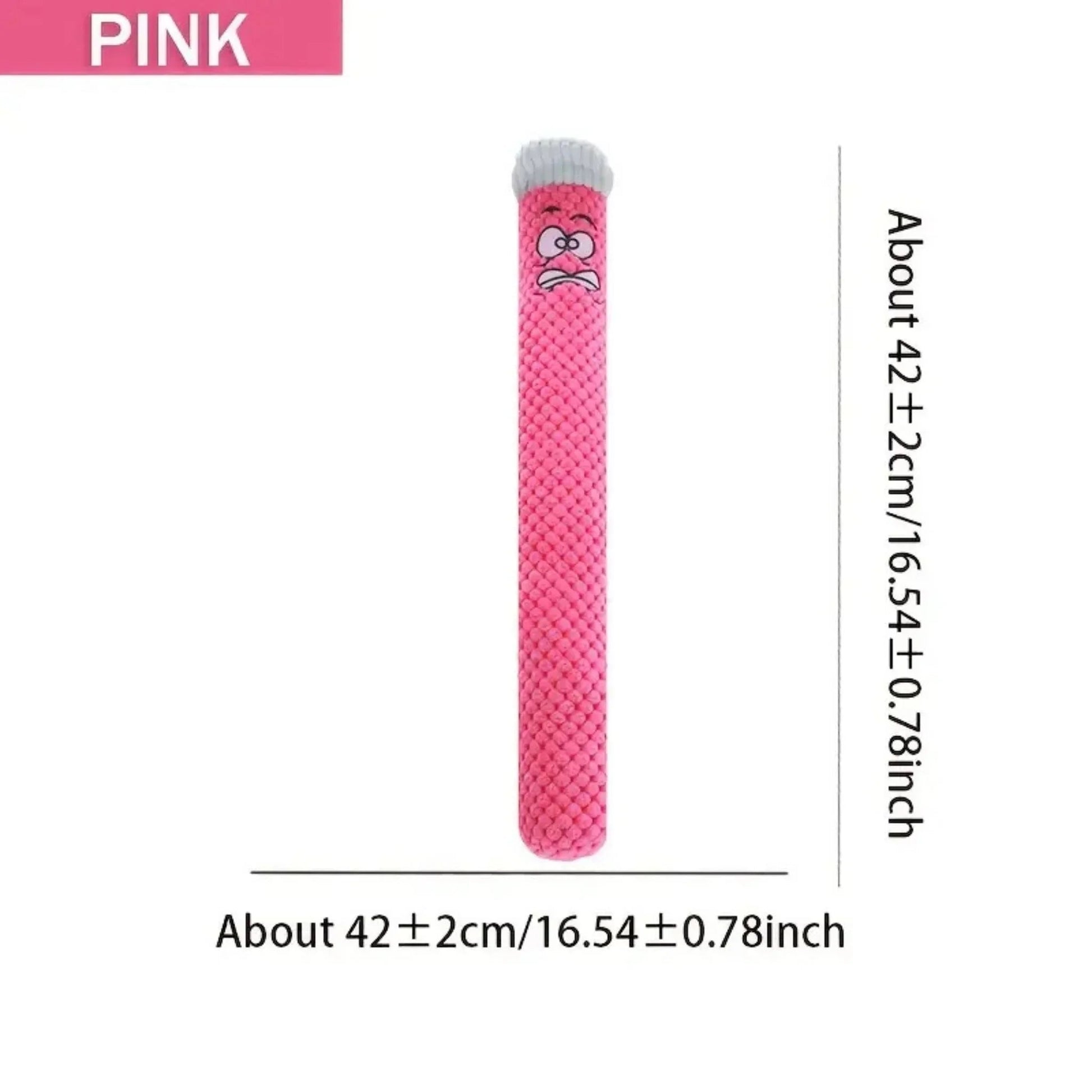 צעצוע אינטראקטיבי לכלבים בצורת מקל ורוד עם הבעה מצחיקה, כולל צפצפה פנימית שמעודדת משחק ומושכת את תשומת הלב של הכלב. הצעצוע עשוי בד עמיד ורך למגע, מתאים למשחקי נשיכה, זריקה ומשחק עצמאי. בזכות המבנה הארוך (42 ס”מ) הכלב יכול בקלות להחזיק ולשחק, מה שהופך אותו לבחירה מצוינת לכלבים קטנים ובינוניים.