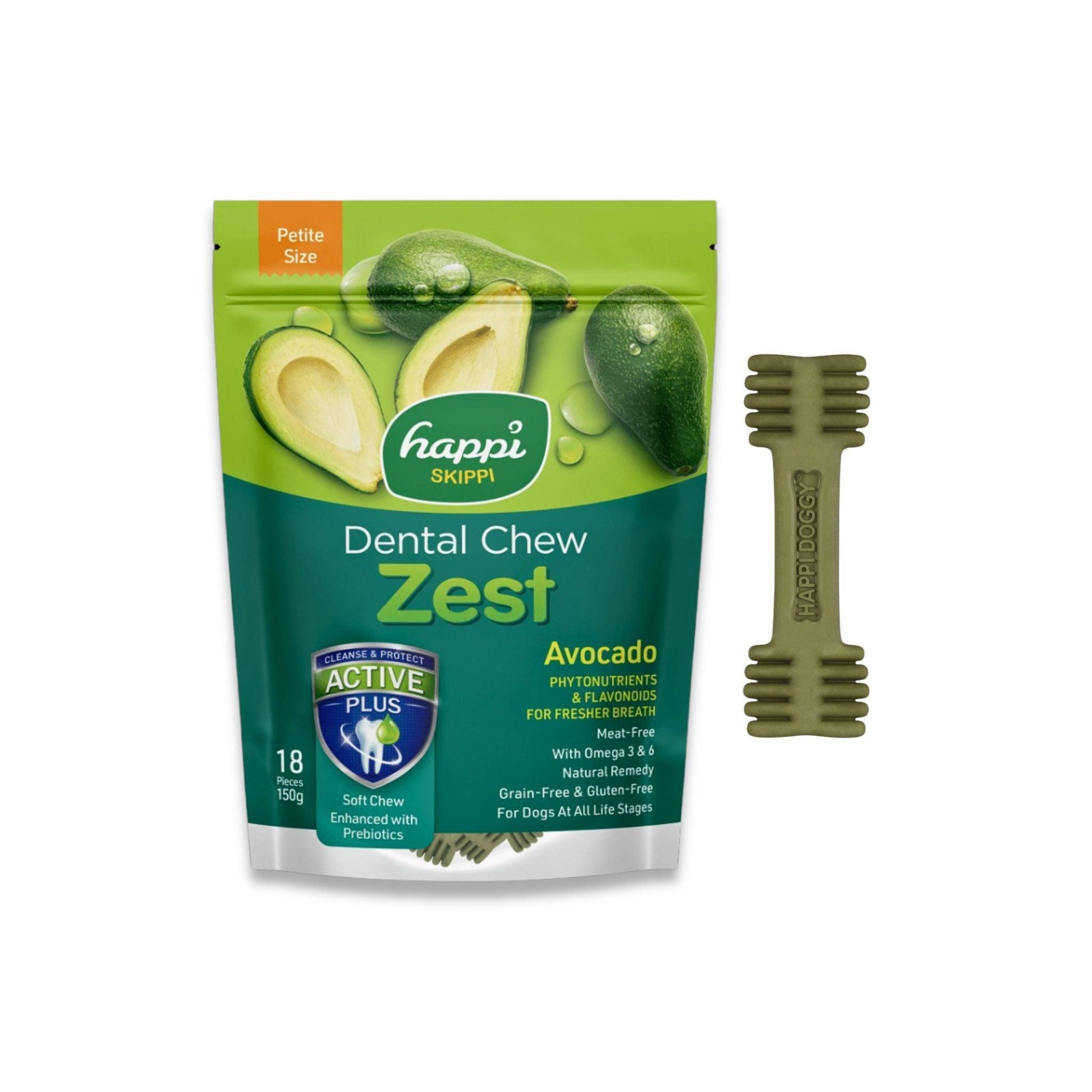 Happi Doggy - חטיף דנטלי הפי דוגי אבוקדו לכלבים קטנים 18 יח' 150 גרם