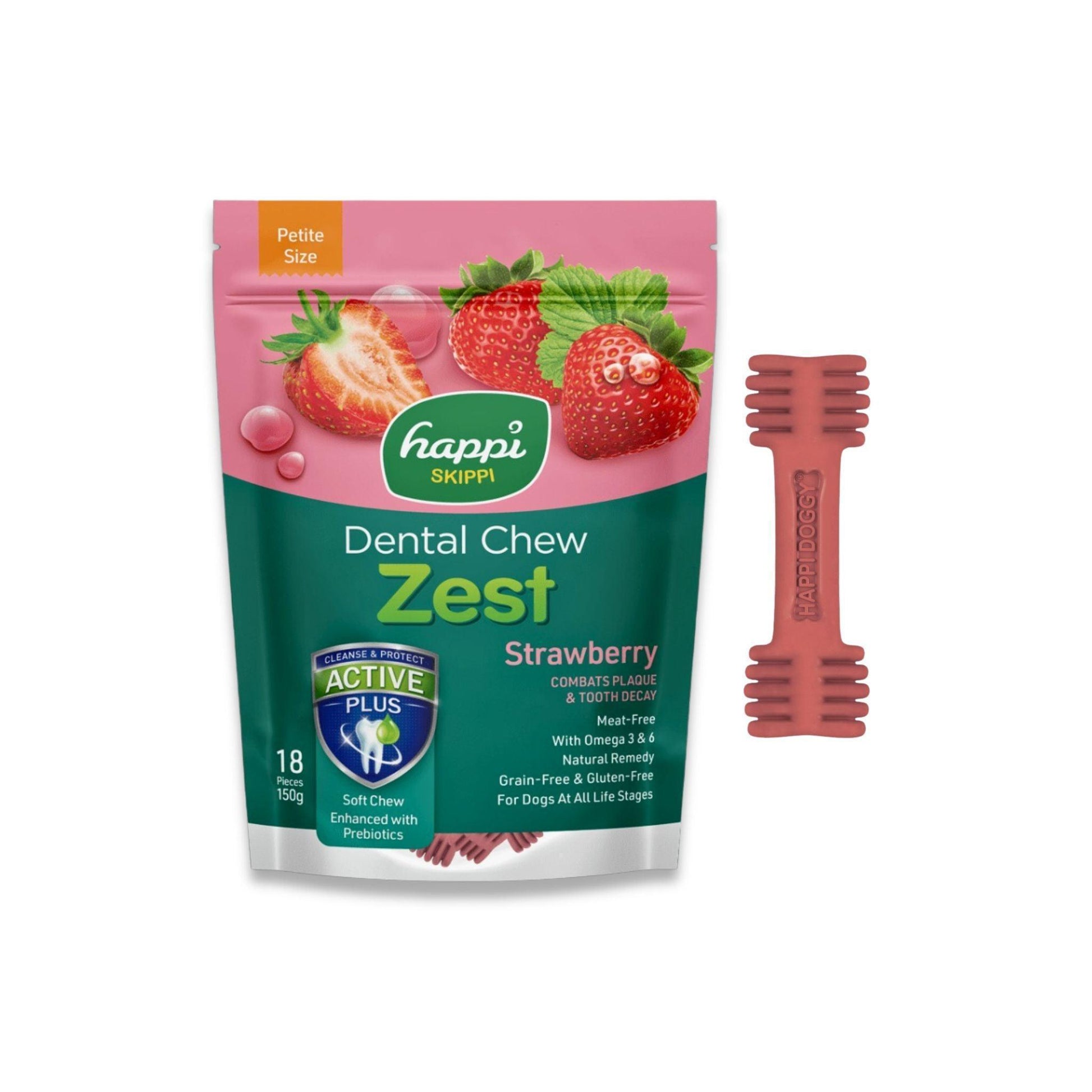 Happi Doggy - חטיף דנטלי הפי דוגי תות לכלבים קטנים 18 יח' 150 גרם