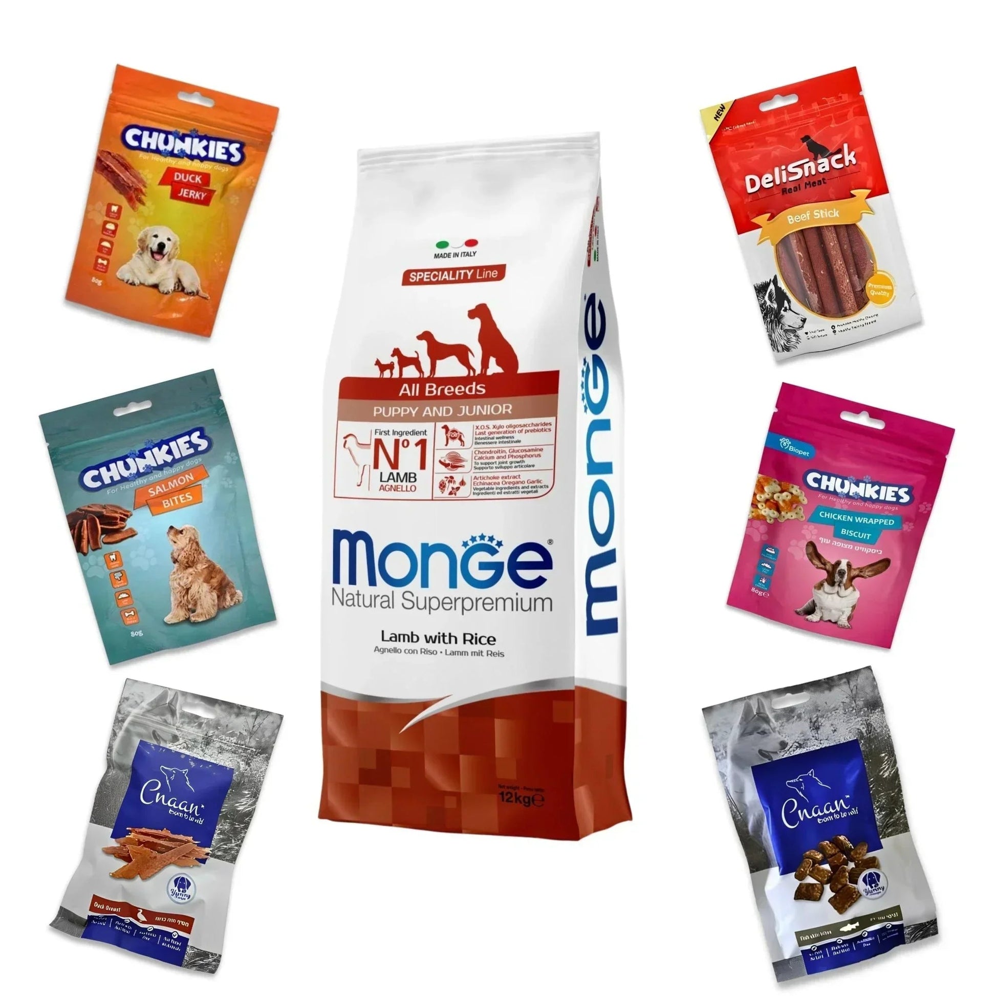 MONGE מונג’ כבש גורים לכלב 12 ק”ג + 6 חטיפים מתנה