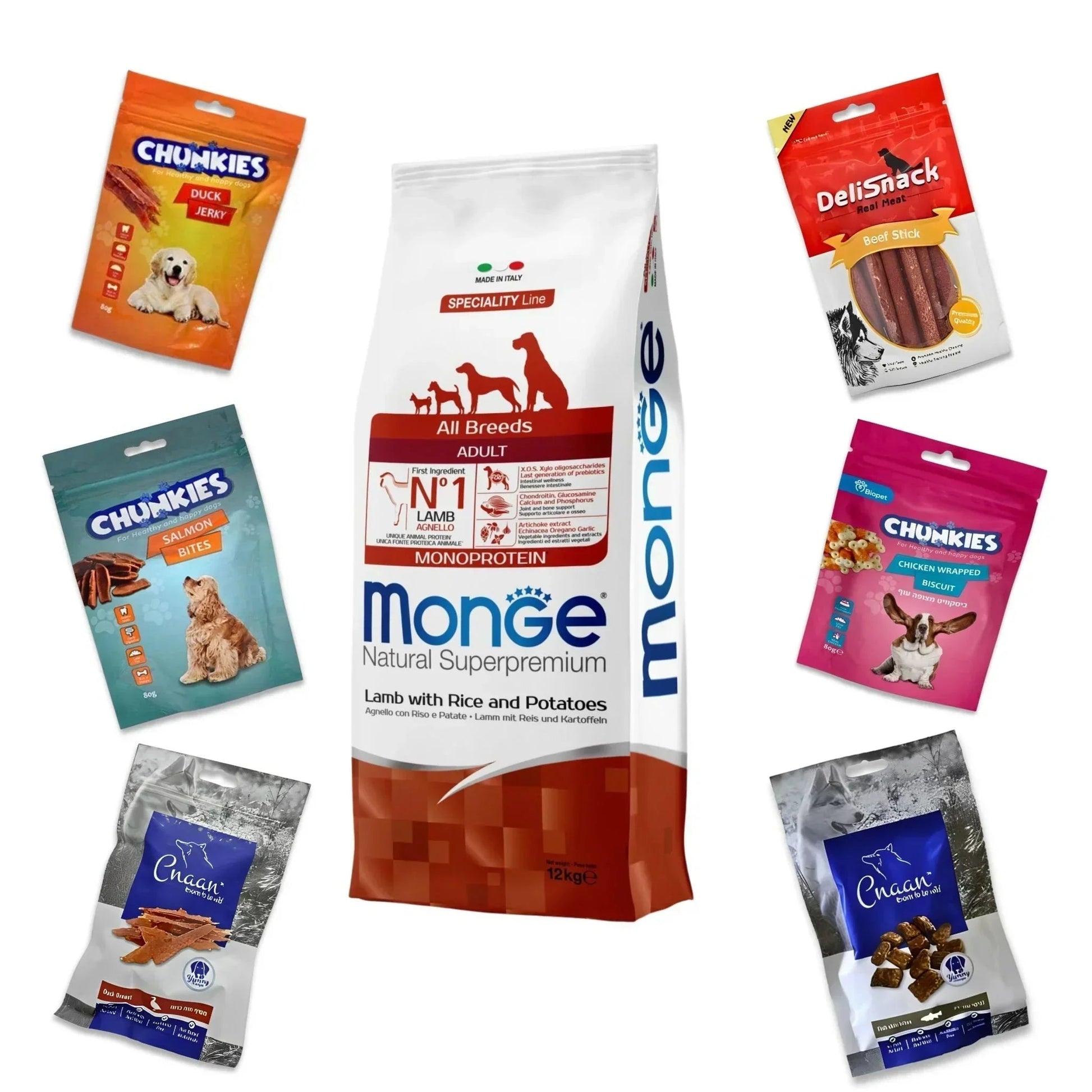 MONGE מונג’ כבש לכלב בוגר 12 ק”ג + 6 חטיפים מתנה