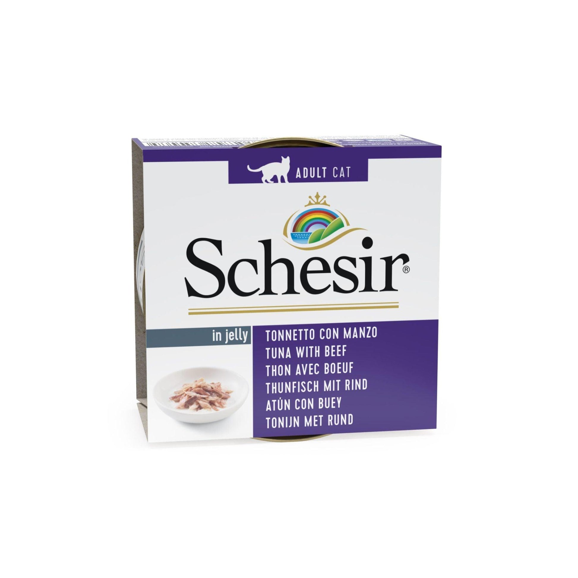 Schesir שזיר מעדן טונה עם נתחוני בקר בג’לי לחתולים 85 גרם