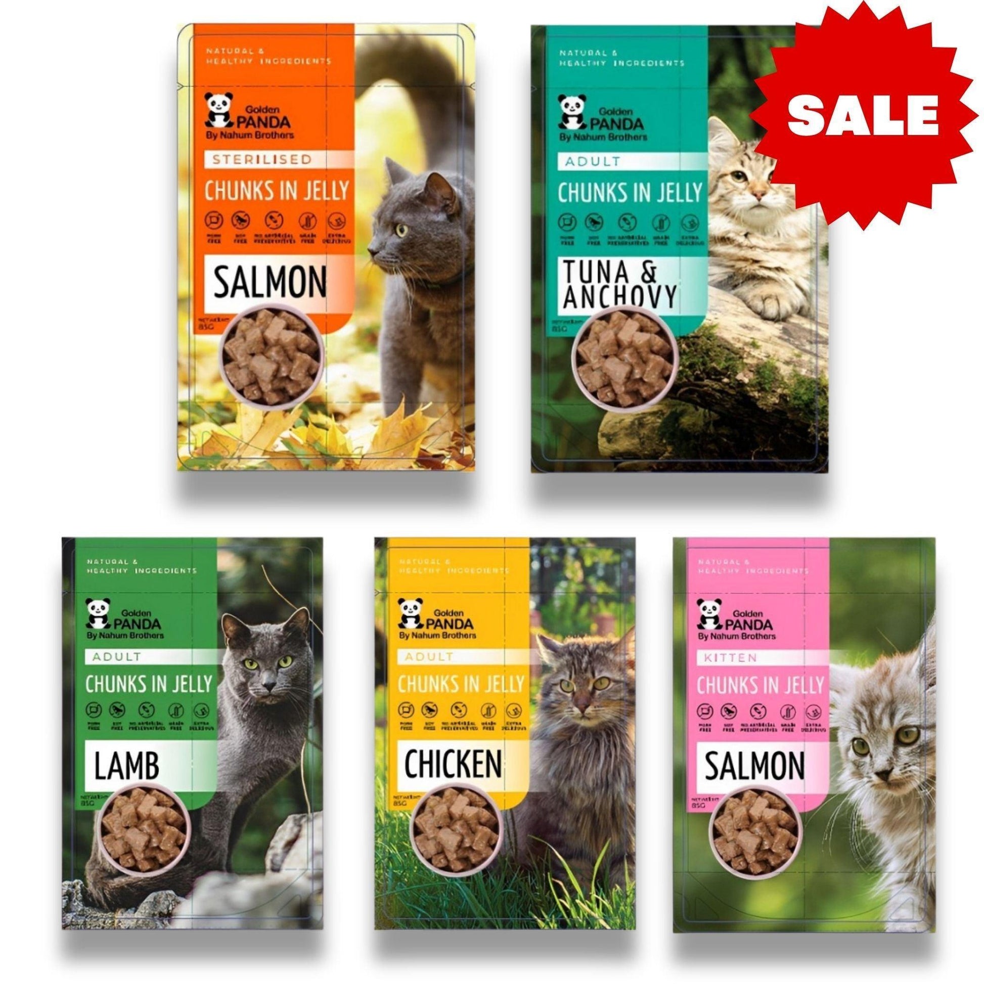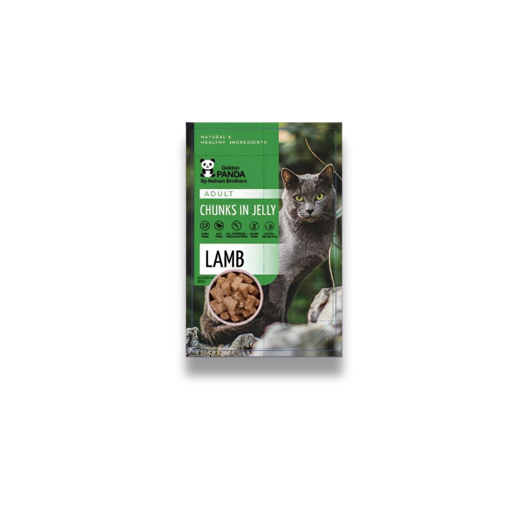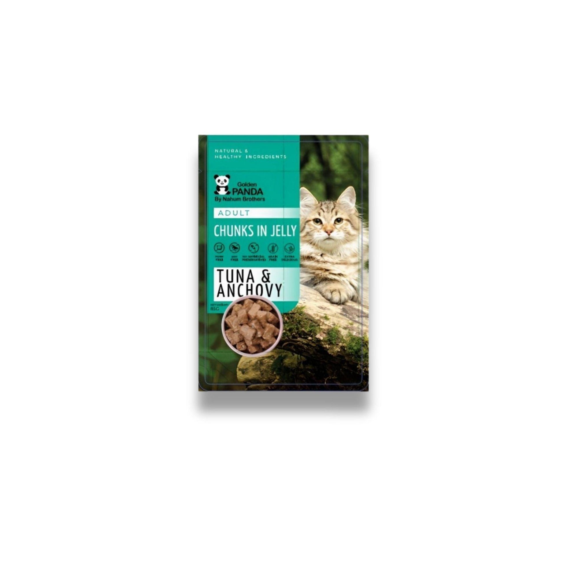Корм для кошек Golden Panda Golden Panda в желейном соусе, 85 грамм. Цена: 40 пакетиков за 115 шекелей.