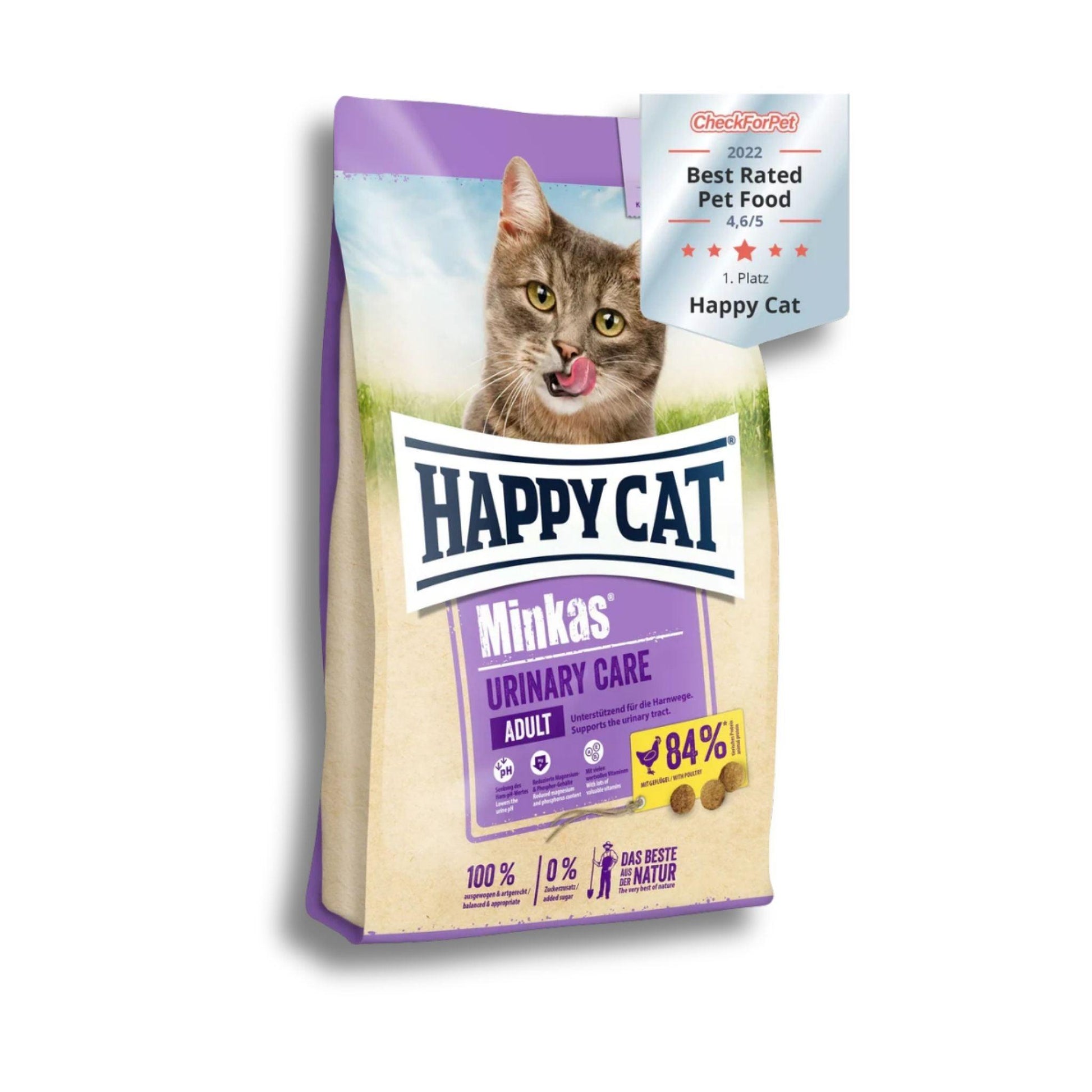 Happy Cat Minkas — корм для взрослых кошек, предназначенный для ухода за мочевыводящими путями.