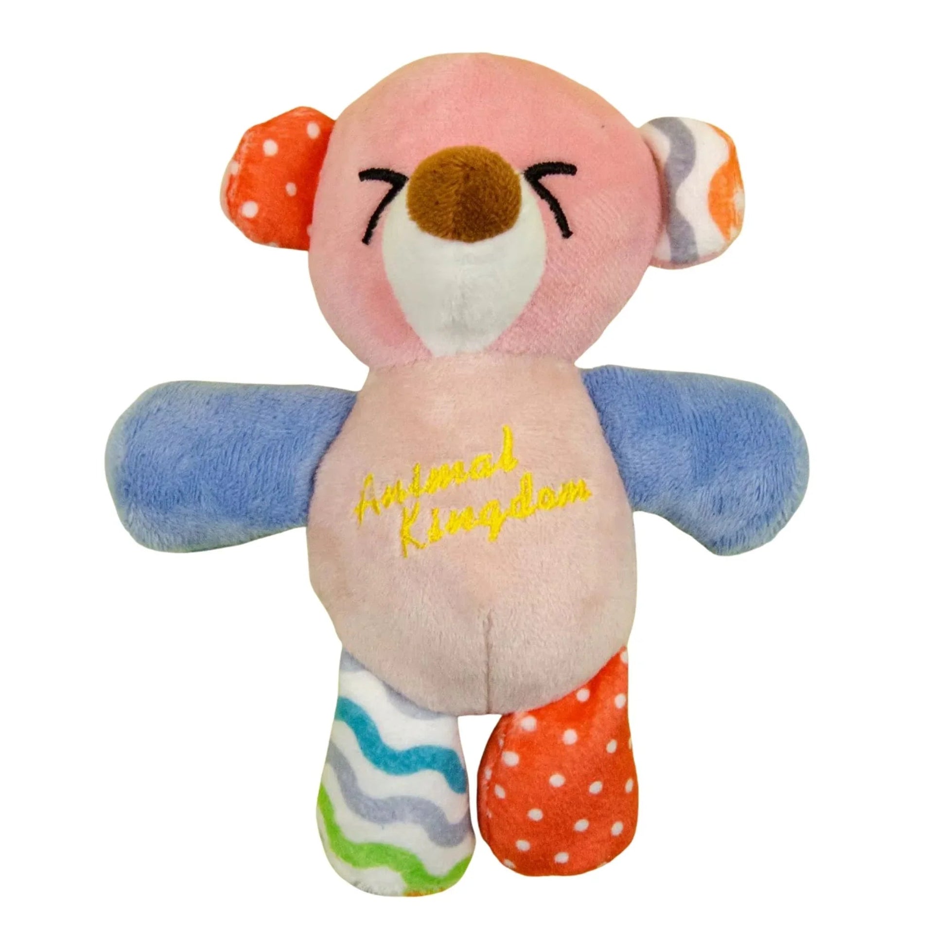 Мягкая кукла-игрушка в виде милого и красочного медведя, идеально подходящая для спокойных игр и поощрения позитивного взаимодействия с собакой.