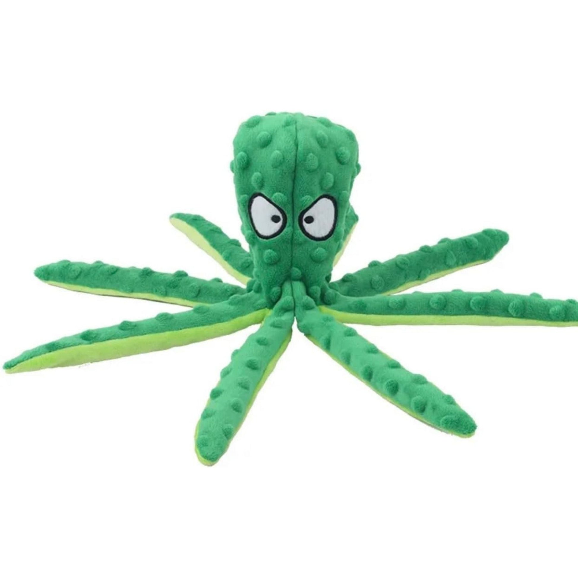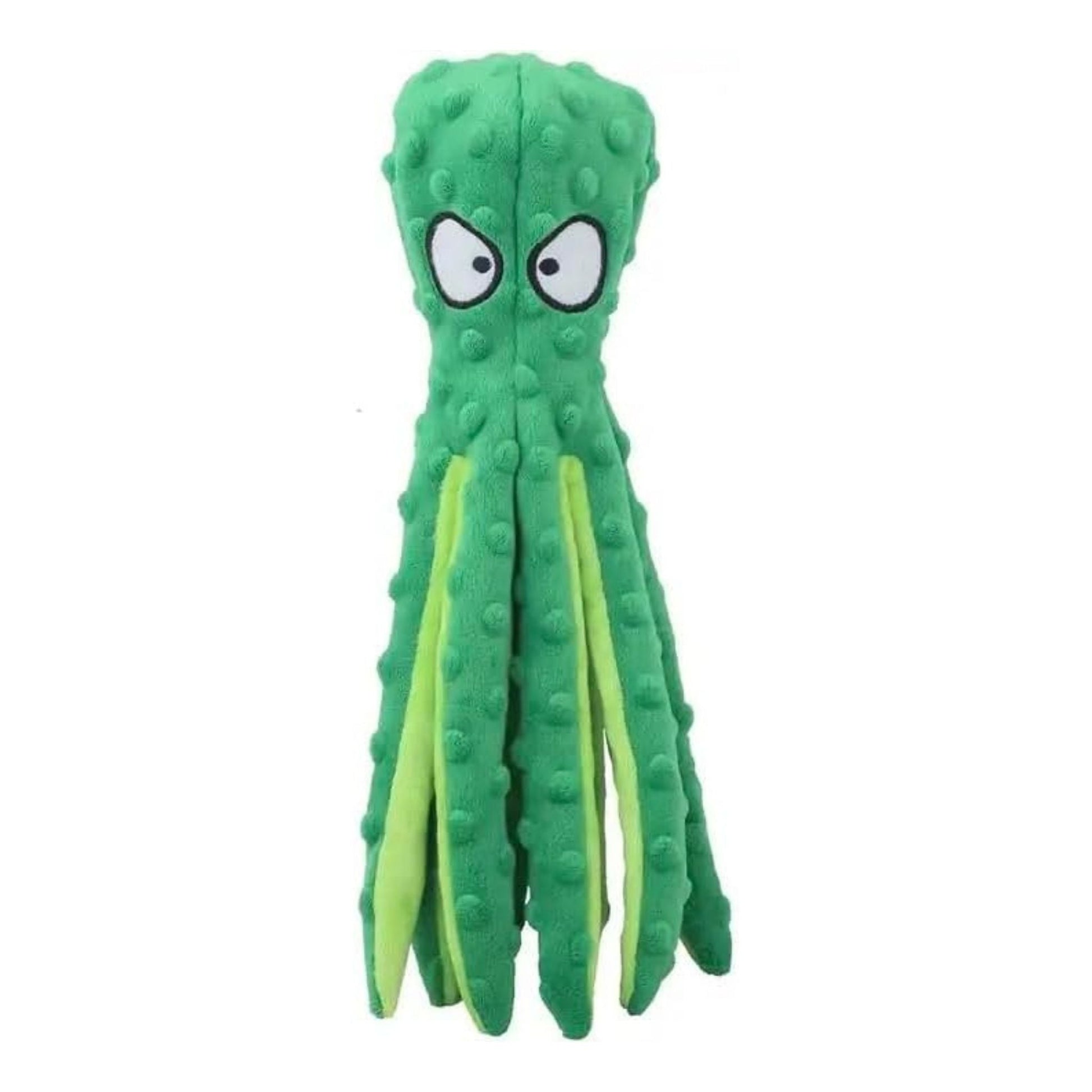 Зелёная игрушка для собак в форме осьминога с забавными глазами, изготовленная из высококачественной ткани с шероховатой текстурой, стимулирует собаку к игре и жеванию. Во время игры игрушка издаёт нежный звук, поощряя физическую активность и помогая снять скуку.