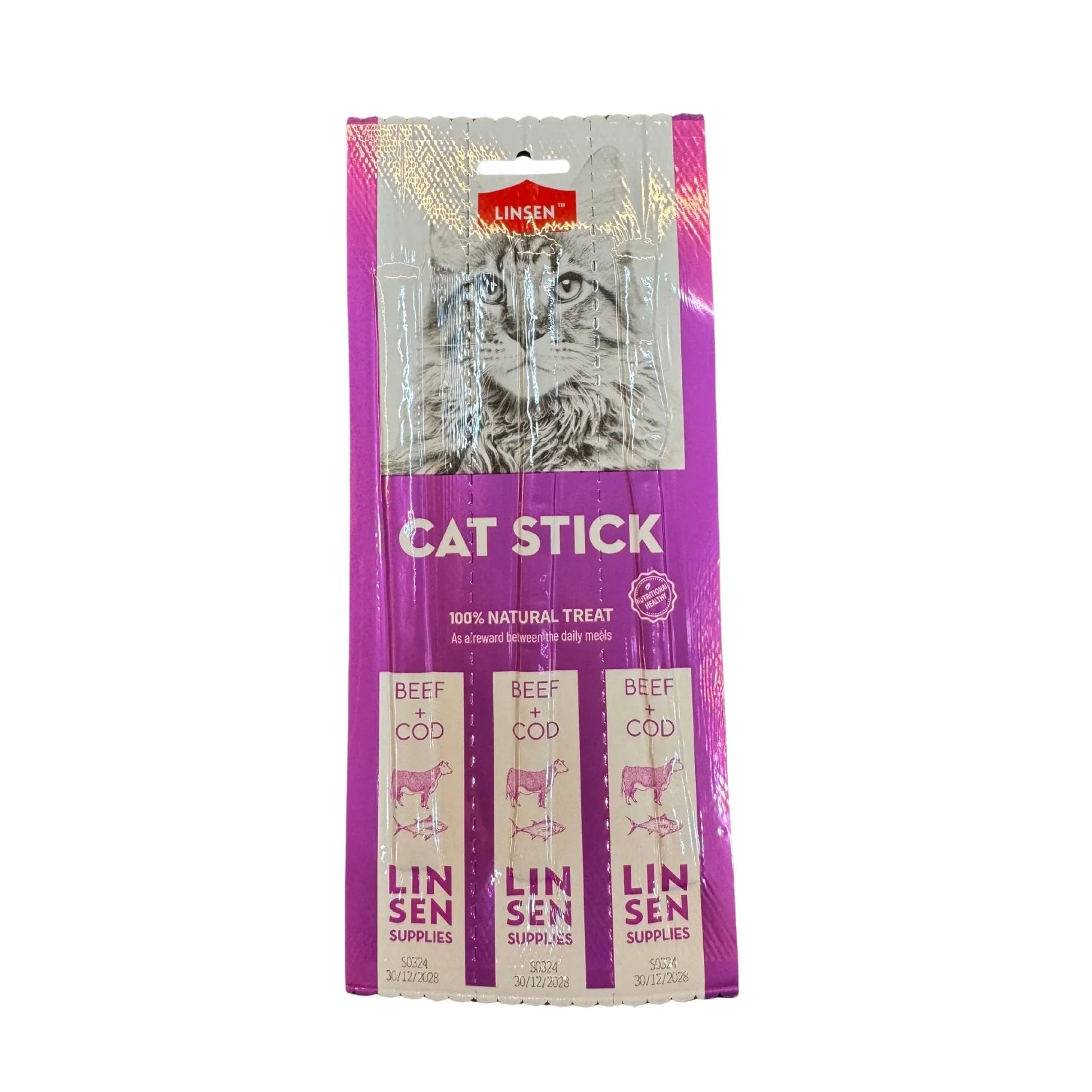 Сухие лакомства для кошек LINSEN со вкусом говядины и трески, 3 палочки.