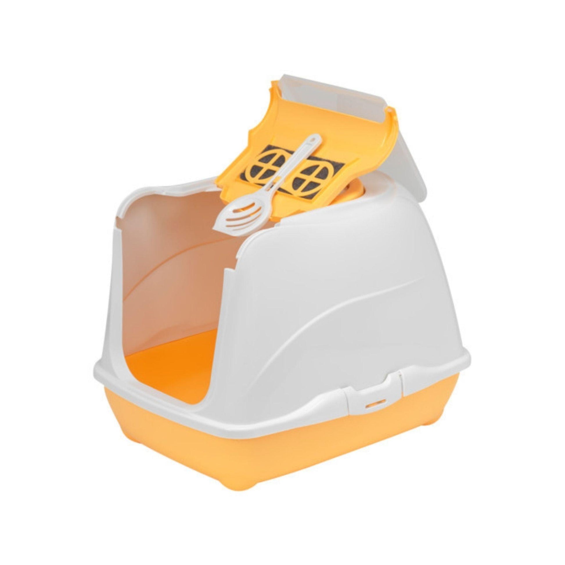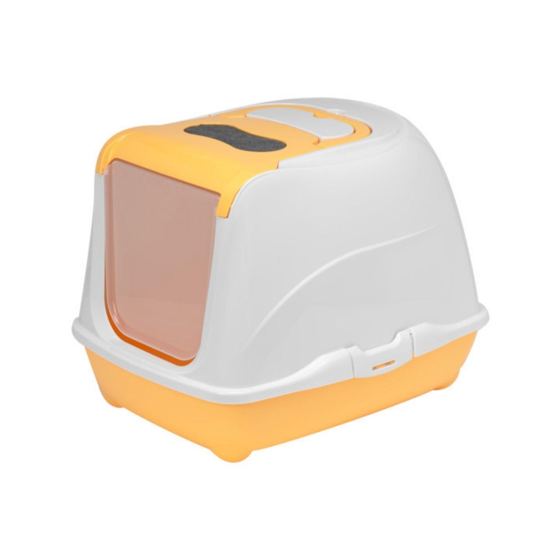 Закрытый кошачий туалет Flip Cat, модель L, от бельгийской компании Moderna, оранжевого цвета — практичное, продуманное и удобное решение для поддержания гигиены кошки и дома. Туалет оснащен откидной верхней крышкой для быстрой и эффективной очистки, угольным фильтром для поглощения запахов и совком для удобной чистки. Высококачественная и прочная пластиковая конструкция, легко чистится и безопасна для животных.