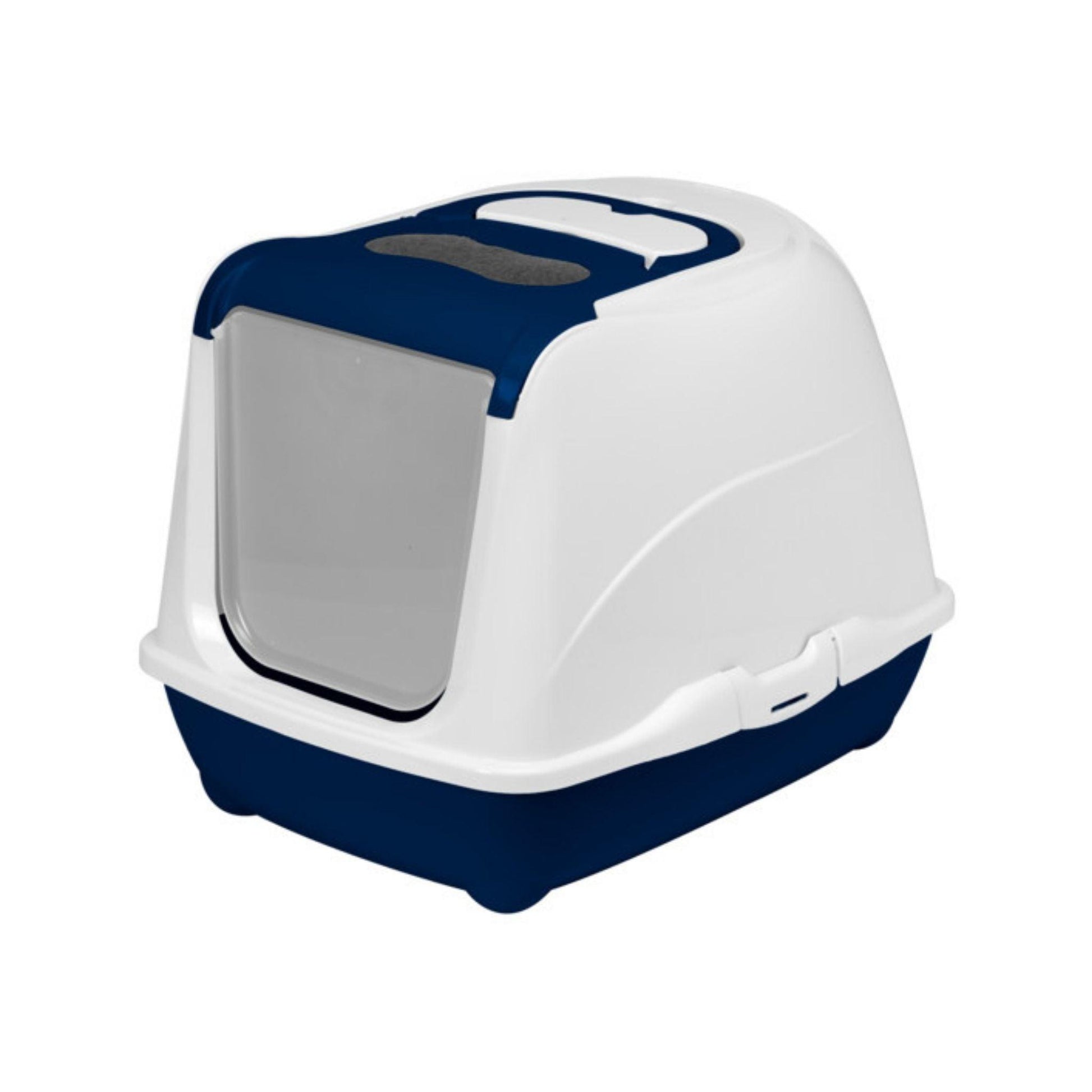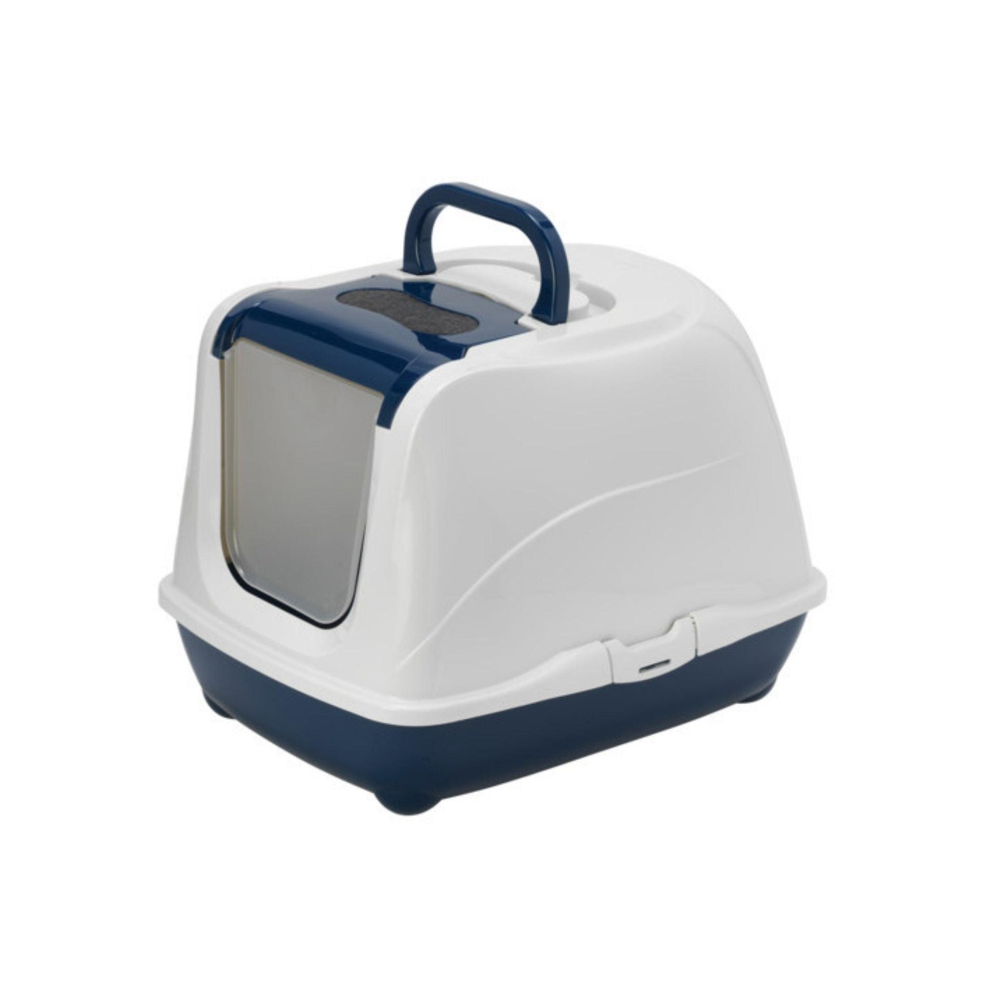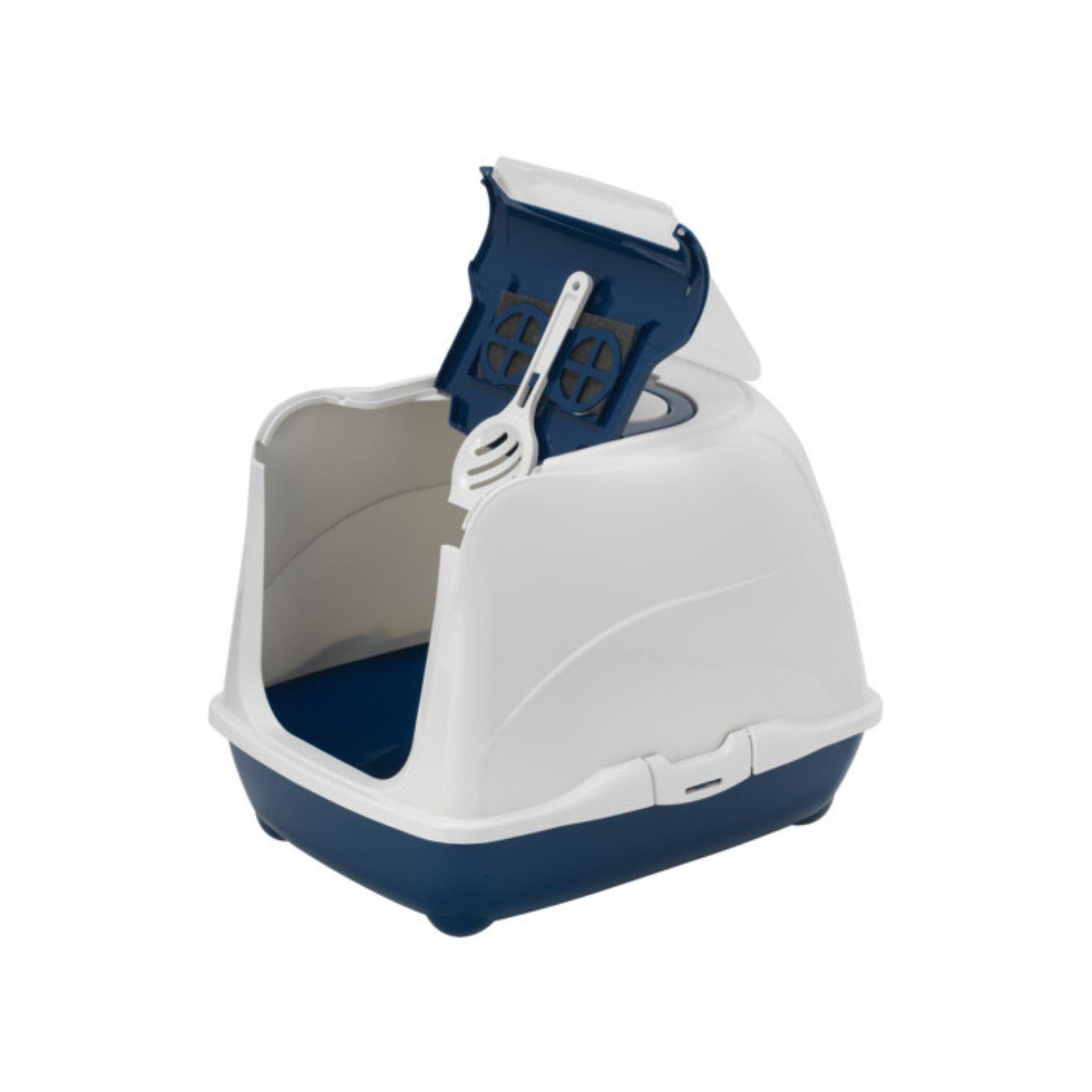 Туалет для кошек MODERNA L закрытого типа с верхним отверстием для легкой чистки, синий цвет.