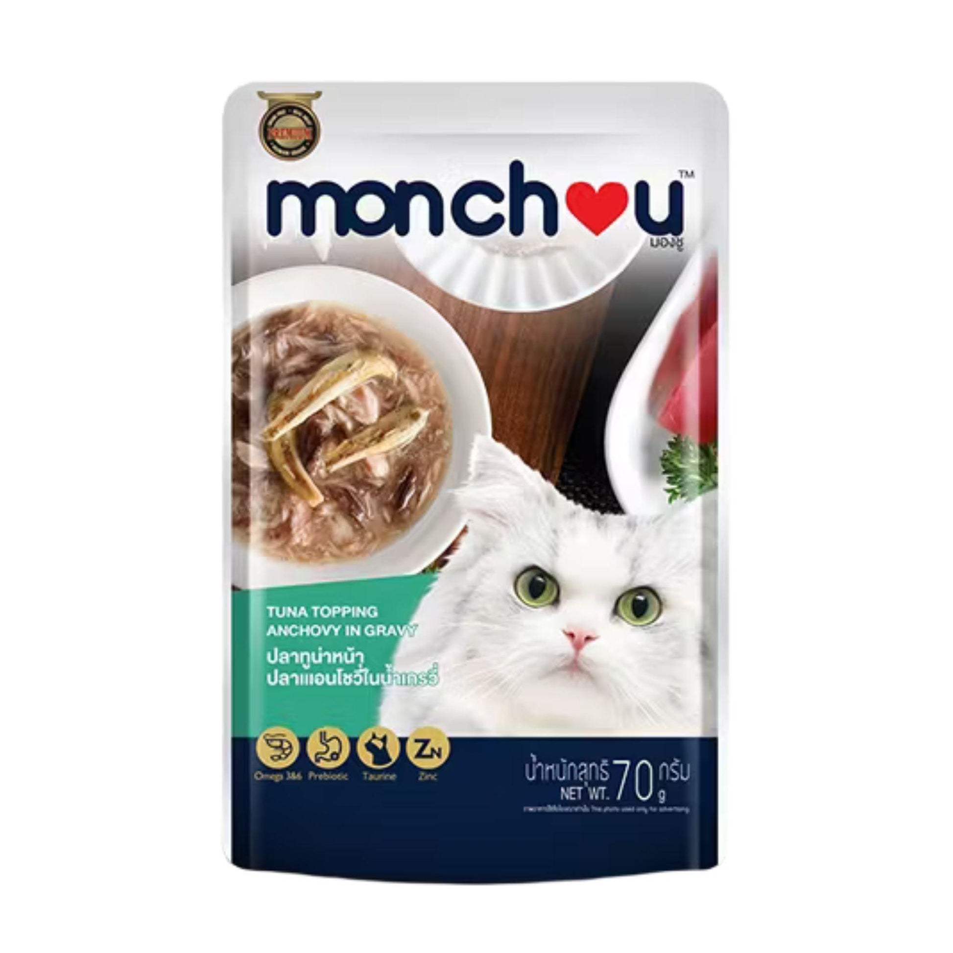 Корм для кошек Monchou, тунец с анчоусами в соусе, 70 грамм